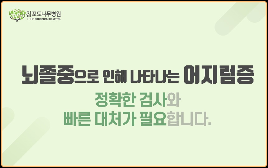 평소 대다수의 사람들이 생각하길 어지럼증은 시간이 지나면 저절로 해결이 될 수 있다고 알고 계신데 뇌졸중으로 인한 어지럼증은 그렇지 않습니다. 이를 방치할 경우 사망까지도 발생될 수 있어 이상 증상이 확인됨과 동시에 병원을 방문해야 합니다. 약을 먹거나 휴식을 취하는 머리 어지러움증 해결 방식은 뇌졸중에 도움이 되질 않습니다. 오히려 사망 위험을 높이는 지름길이오니 참고해주시기 바랍니다.